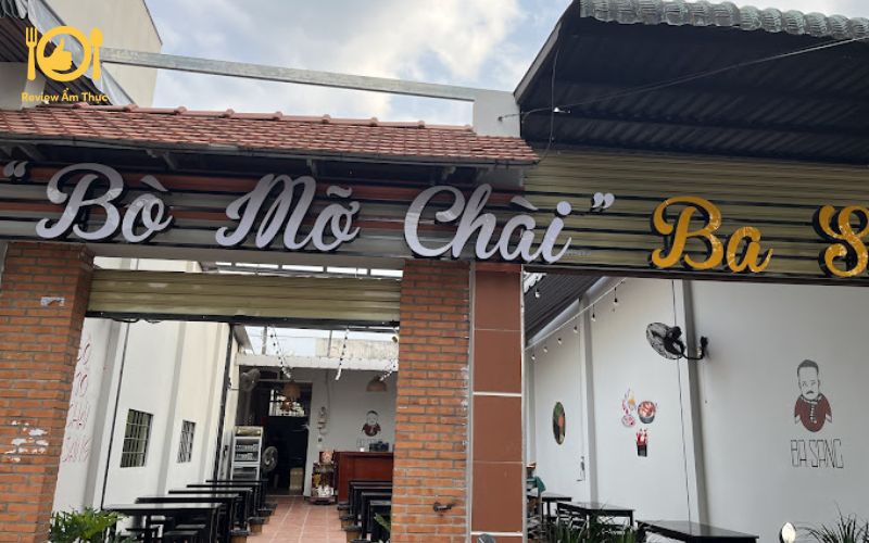 Bên ngoài quán cũng có bảng hiệu lớn để tên “Bò Mỡ Chài Ba Sang” rất dễ để nhận diện. Quán có chỗ giữ xe máy miễn phí, tuy nhiên không hỗ trợ giữ xe ô tô nên bạn cần lưu ý khi ghé quán nhé!