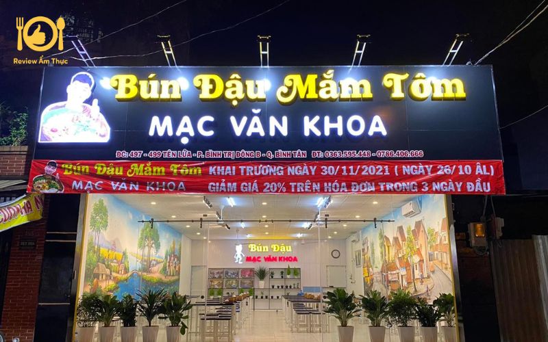 • Quán Mạc Văn Khoa chuyên phục vụ các món: Bún đậu mắm tôm