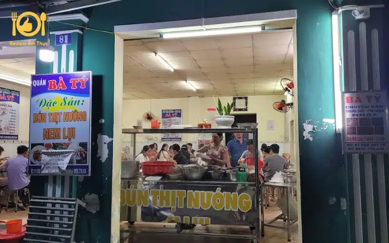 Với bề dày kinh nghiệm nhiều năm, quán bún thịt nướng Bà Tý luôn chiếm trọn cảm tình của thực khách nhờ chất lượng và hương vị khó cưỡng. Điểm nhấn của quán chính là món bún thịt nướng, với tô bún đầy đặn, thịt nướng vàng ươm, rau sống tươi mát, nước mắm đậm đà, và đậu phộng thơm bùi.
