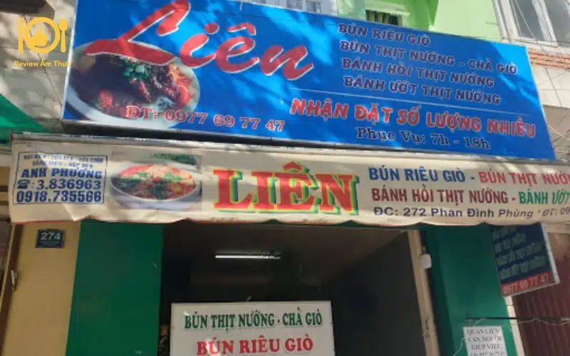 Nằm trên con đường Phan Đình Phùng sầm uất, quán nổi bật với biển hiệu lớn màu xanh dịu, ghi rõ tên “Liên” và liệt kê đầy đủ các món ăn, giúp khách hàng dễ dàng lựa chọn. Quán nằm ở vị trí thuận tiện, dễ dàng di chuyển bằng xe máy. Tuy nhiên, chỗ đậu ô tô khá hạn chế, vì vậy khách hàng đi  ô tô nên cân nhắc gửi xe tại các địa điểm lân cận.