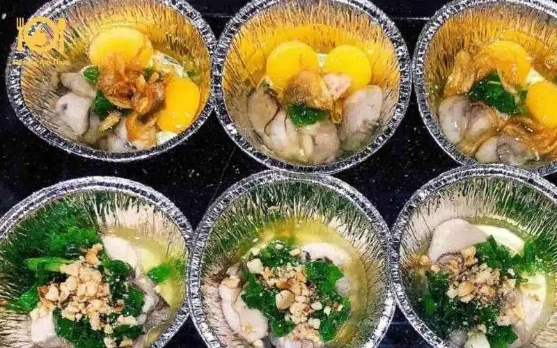 - Khi ăn, có thể dùng muỗng để lấy hàu cùng với mỡ hành và trứng cút, sau đó nhúng tất cả vào nước chấm và thưởng thức.