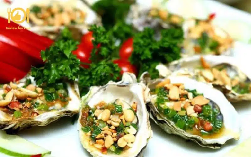 Hàu nướng mỡ hành là món ăn hấp dẫn với những con hàu tươi ngon, được nướng trên lửa than để giữ nguyên hương vị biển đặc trưng.