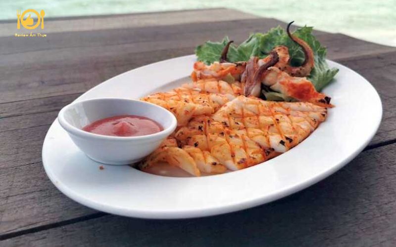 • Thưởng thức: Mực nướng than ăn kèm với muối tiêu chanh hoặc nước mắm ớt me.