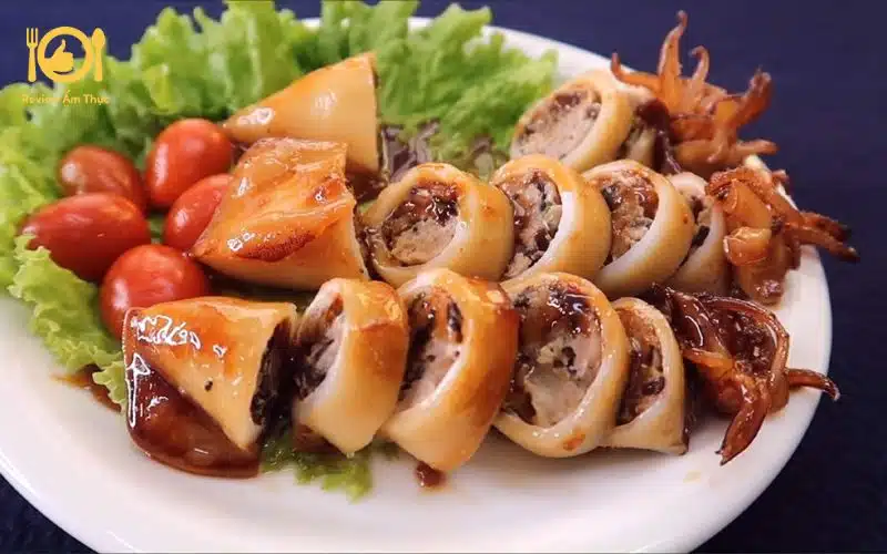 Review cách ăn và hương vị của món mực nhồi thịt nướng