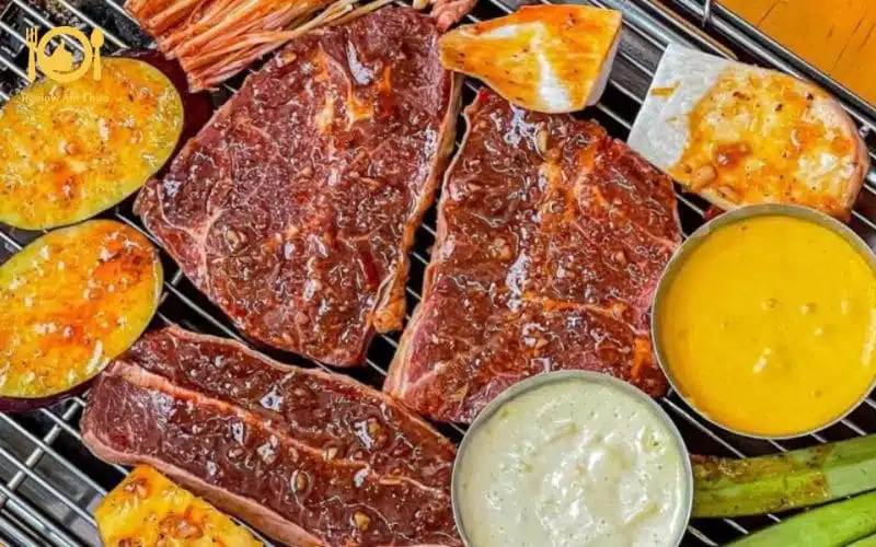 - Menu: Dẻ sườn hảo hạng , Lõi vai cuộn phô mai , Gù bò mềm tan cùng các loại sốt đa dạng,…