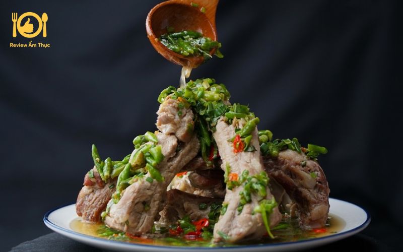 Nước sốt cũng được làm từ nước luộc thịt và ớt nên có hương vị ngon ngọt và đậm đà. Kết hợp với đó, món ăn được bày biện khá đẹp mắt với hành lá, hành tây và ngò xung quanh,… Điều này khiến cho thực khách chỉ nhìn thôi là đã muốn thưởng thức ngay.