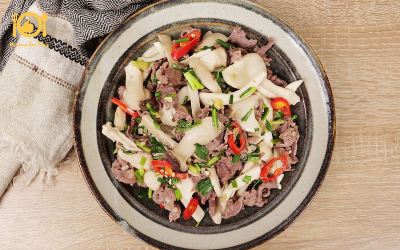 Review món thịt bò xào nấm đùi gà thơm ngon