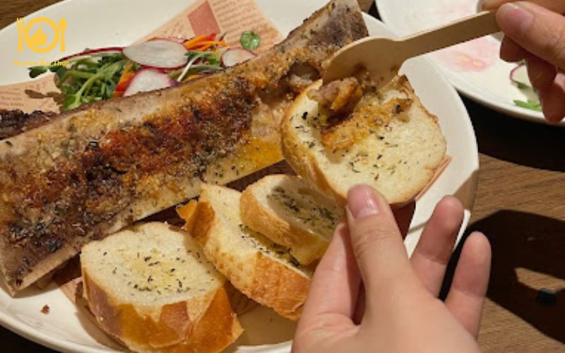 Khi thưởng thức, thực khách sẽ cảm nhận được sự béo mềm, tan chảy trong miệng cùng vị ngọt thanh tự nhiên của tủy bò. Món ăn được ăn kèm với bánh mì, rau sống và muối tiêu chanh, tạo nên hương vị hài hòa khó cưỡng.